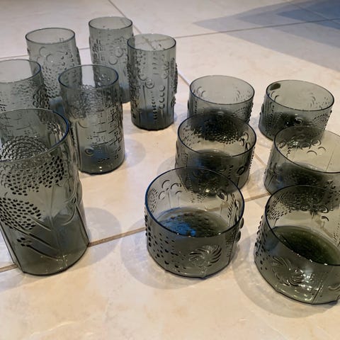Oiva Toikan suunnittelema Flora -sarjan turkoosi jalallinen lasikulho