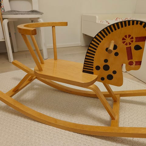 Vahva puusta tehty.Harjas ja häntä on aidontuntuiset.Korkeus57cm leveys alhaalta90cm.Nouto ja käteismaksu.