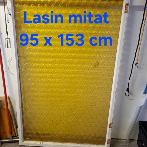 Hyvä kuntoisia lasiseinäelementtejä esim. teressilasitukseen, kasvihuoneeseen , tilanjakajaksi jne. Rungon syvyys 95mm. Jakopiena korkeus suunnassa keskellä elementtiä. Yksi kerros lasilla.