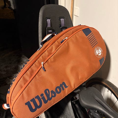 Wilson Tennislaukkuun mahtuu maila, kengät, juomapullo ja termospullo. Kätevä ja helppo kuljettaa esimerkiksi muutossa.