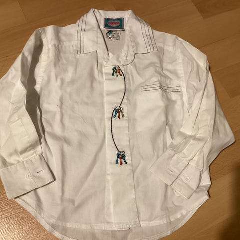 Kiderit valkoinen paita 116 ja z-collection juhlahousut 110. Käytetty meillä samaan aikaan. Kunto hyvä, housuissa yksi langannousu joka ei juuri häiritse. Ilmalassa.