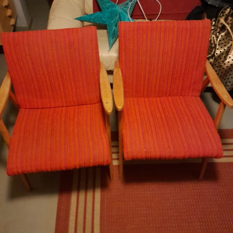 2 vanhaa nojatuolia entisöitäväksi.Kahden tuolin yhteishinta 40e.