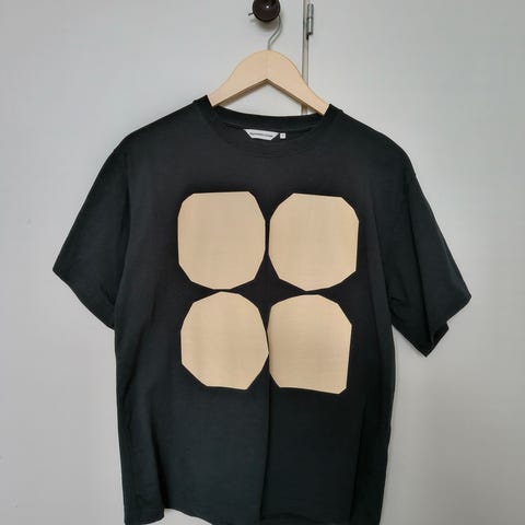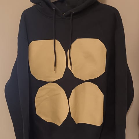 Myydään melko vähäisellä käytöllä ollut Marimekon musta huppari Pienet kivet -kuosilla.