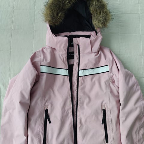 Everest lasten takki koossa 116, väri vaaleanpunainen. Takki on vedenpitävä ja suunniteltu tytöille. Takissa on vetoketjullinen etuosa ja kaksi etutaskua. Takissa on käytön jälkiä, kuten kuvissa näkyvät kulumat ja vauriot hihoissa. Ei huppua