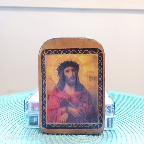 Reliefi on muotoiltu muinaista kääröä tai pergamenttia muistuttavaksi, ja alareunassa lukee teksti "JERUSALEM". Hahmot ovat yksityiskohtaiset ja värit syvät, luoden maalaishenkisen ja perinteisen tunnelman. Se on erinomainen lisä uskonnollisen taiteen keräilijälle tai kaunis ja merkityksellinen sisustuselementti.