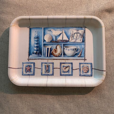 Iso meriaiheinen lasipäällysteinen tarjotin/koristetaulu hyllylle