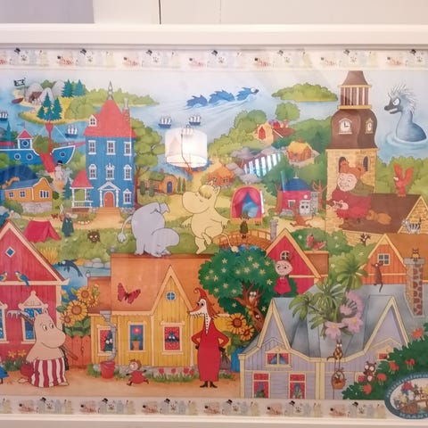 Myynnissä Moomin juliste 24x30, kehyksen kanssa 24,5x33,5cm. Erittäin hyvässä kunnossa. Lisää infoa: https://www.finlandquality.com/en/posters/247-moomin-poster-moomin-valley-characters-24-x-30-cm-black-and-white-6430034227441.html
