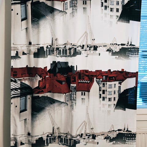 Uusia verhoja. Design Riina Kuikka. 69%puuvillaa, 31% kierrätettyä polyesteriä. Yhteishinta 78€.