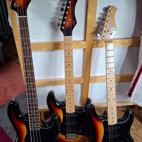Myydään stratomallinen Behringerin kitara. Sopii oivallisesti aloittelijalle mutta miksei pidemmällekin ehtineelle. Kitarassa on uudet kielet ja kaikki säädöt nauhoja myöten on pistetty kohdilleen. Lisäksi poterot on vuorattu kuparilla ja muitakin hifistelyjä tehty mm. uudet Wilkinson mikit. 200-300e jumppa kokonaisuutena. Tästä tosisoittajalle edukkaasti. Bodyssa pieni dingi ja vähän soittonaarmua. Näkyy kuvassa mutta ei juurikaan livenä.
