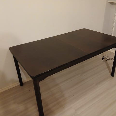 Täyspuinen jatkettava pöytä ja 6 tuolia. Jatkopala 57cm.