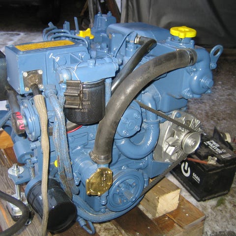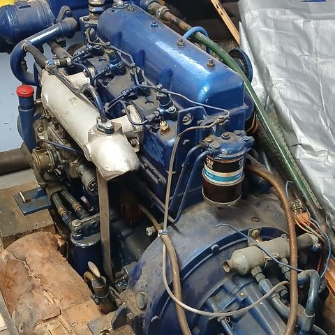 Nelipyttynen Valmet diesel ja veljet merikytkin. Purettu Keskimoottori veneestä.