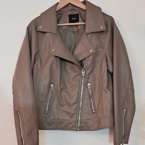 Zizzi biker-takki musta, naisten koko M. Takki on valmistettu keinonahasta, ja siinä on vetoketjulliset taskut sekä klassinen kaulus. Ollut kerran päällä. Postituskulut ostajalle.