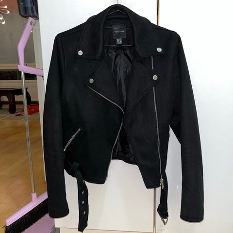 Ihana mokkanahkamainen jakkutakki, kunnoltaan kuin uusi. Väri tässä vaalea beige. Edessä vetoketju ja kolme vetoketjullista taskua. Hartioilla nepparikoristeet. Sisäkangas luonnonvaalea silkin tuntoinen kangas.
