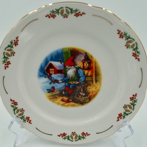 Perinnejoulu kahvikuppi, tassi ja pullalautanen.