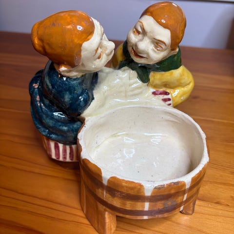 Hyväkuntoinen Pyykkäri patsas 16 cm korkea. Hyvän mielen tuoja!