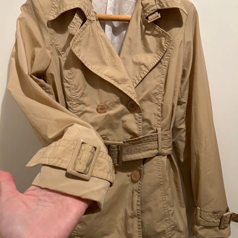 Myydään kevyt, musta Pimkien trenssi koossa M. Käytetty, vähän nukkaa. Mainio esim ulkomaanreissulla kun iltaisin ilma viilenee.