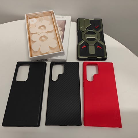 Hetken aikaa käytössä olleet UAG:n kuoret S24 Ultralle. Eivät siis aidot, mutta eivät ole aidon hintaisetkaan. Tarkkasilmäinen huomaa kyllä laadussa eron, mutta silti ihan toimivat kuoret. Ja MagSafe magneettikin on vahva.