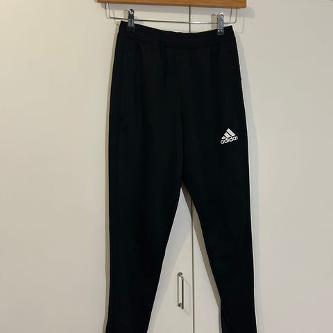 Hyväkuntoiset Adidas verkkarit koko M. Miesten malli. Pieni viiru polven yläpuolella. Ei reikiä.
