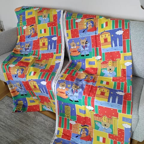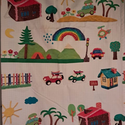 Kiva ja värikäs nalleverho vaikka lastenhuonetta koristamaan tai vaikka seinävaatteeksi.