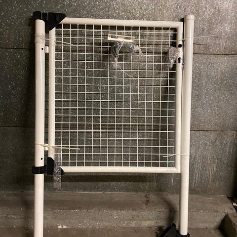 Metallinen, todella jykevää tekoa oleva kaksiovinen portti. Leveys 157cm, korkeus 120cm.