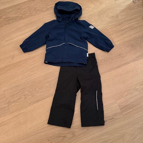 Reimatec kuoritakki ja kuorihousut kokoa 92, yhdellä lapsella käytössä yhden kauden. Pientä kulumaa (ks. kuvat) muuten hyvässä kunnossa. Nouto tai toridiili