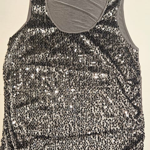 Ihana hopea musta paljettivaate. Ei kokomerkintää, mutta menee S-M kokoiselle. Nouto.