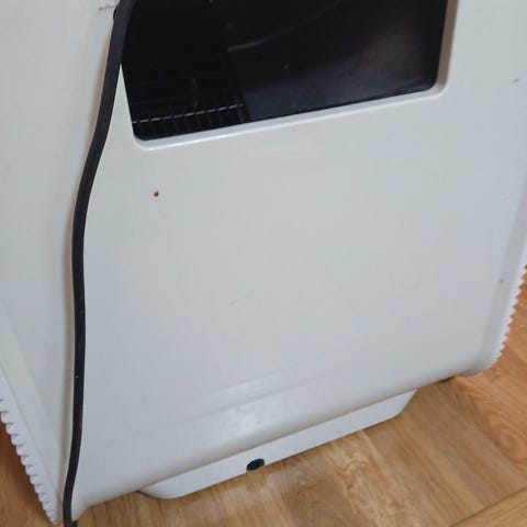 Pari vuotta vanha (mutta pari kk käytetty) ilmastointilaite. Toimii hyvin ja mukaan tuuletusikkunasovitin ym. härpäkkeet. Renkaat alla, mutta painaa paljon. Päällä varastoinnista pari teipinjälkeä, mutta muuten siisti.