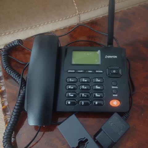 Vanha lankapuhelin näppäimellä ja seinätelineellä