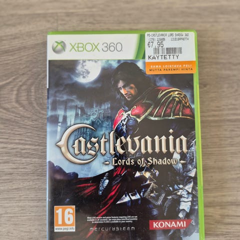 Konami Castlevania Lords of Shadow Xbox 360 peli. Toimii Xbox 360 -pelikonsolilla, sisältää pelin alkuperäisessä kotelossa. Ikäsuositus 16 vuotta ja yli.