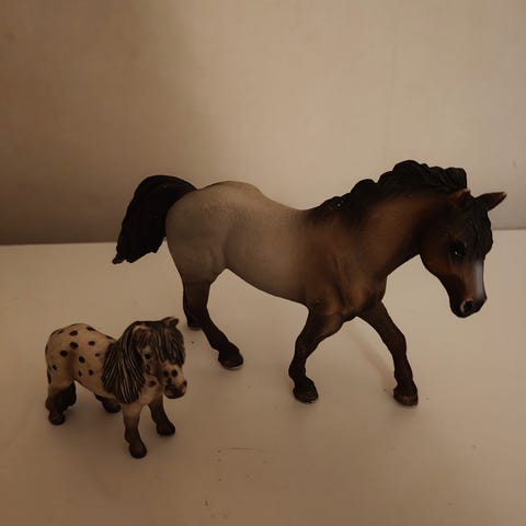 Kolme pientä schleich hevosta ja yksi koira. Myydään koko setti 10 eur.