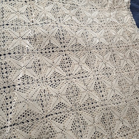 Kalastajalangasta vrkattu verho/sängynpeitto 170 x 120 cm. Ei ole ollut käytössä.