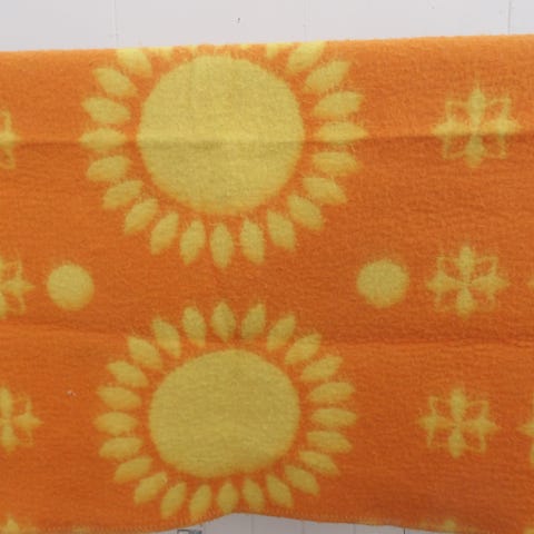 Harvinaisuus tarjolla - hämmästyttävä viltti - tämä on aivan saman näköinen kuin vuoden 1974 äitiyspakkauksen viltti, vain suurikokoisempi ja eri väreissä. Ehkäpä joku Toritietäjä tietää stoorin tämän takana? Tämäkin akryyliä. Lisää kuvia kiinnostuneille. Mitat ovat 145 x 190 cm.