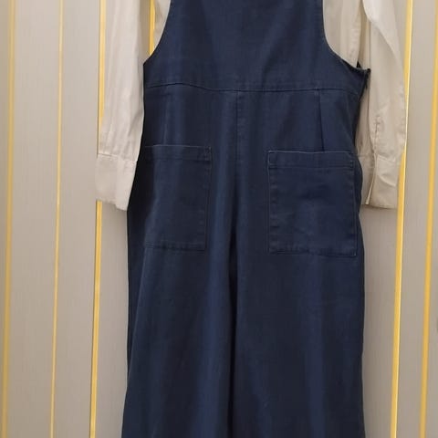 Tosi naisellinen ja sensuelli täyspitkä farkkuhaalari. Joustavaa, miellyttävää kangasta. Tämä on tosi upea päällä. Levenevät lahkeet ja pidemmät hihat, tuo kauniisti korut esiin.