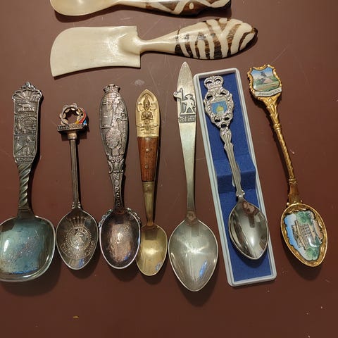Kuvanmukainen kasa erilaisia matkamuistoja ja koristeita