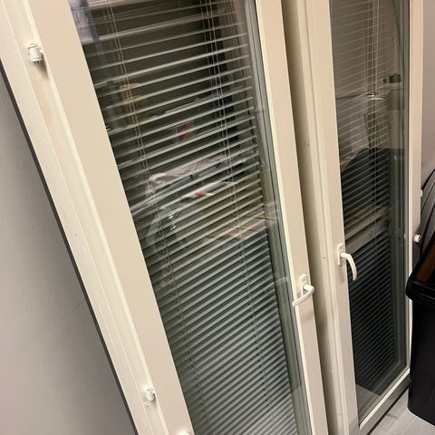Lämpöikkuna, karmi ja sisäpuite valkoiseksi maalattu mänty, ulkopuite ja ulkoverhous valkoiseksi polttomaalattua alumiinia. Hyvä lämpöarvo Kehäristikot irroitettavat ja nämä voi jättää laittamatta ikkunaan.