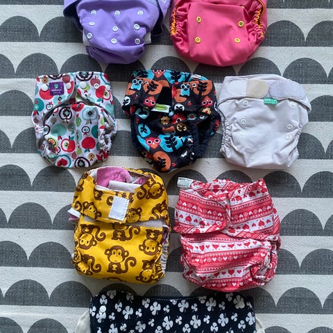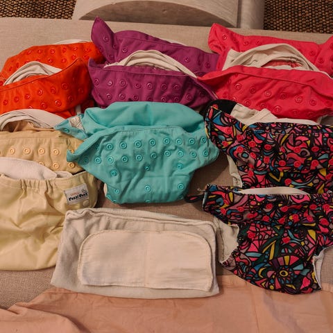 Täydellinen paketti kestovaippailuun eli 12 kpl uusia kestovaippoja koossa 1kk -18kk.