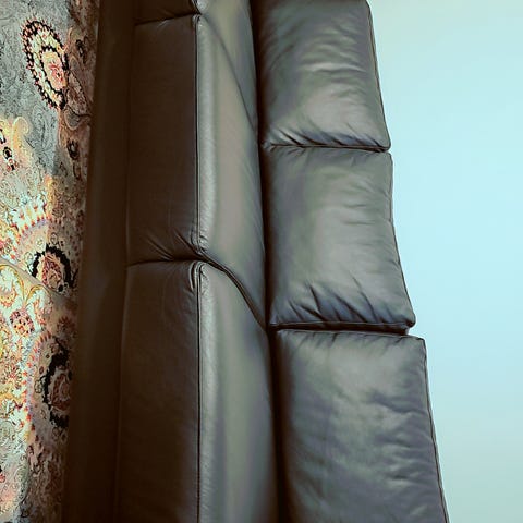 Mukaan saa vaalean nahan puhdistusaine paketin, jolla puhdistettu sohvaa muutaman kerran.