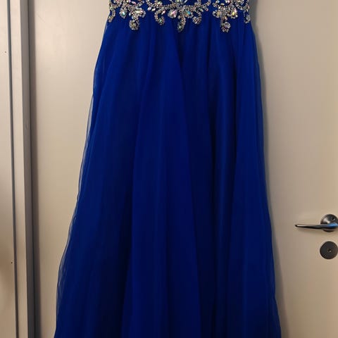 Hyväkuntoinen olkaimeton iltapuku, esim. vuosijuhla- tai vanhojentanssimekoksi.