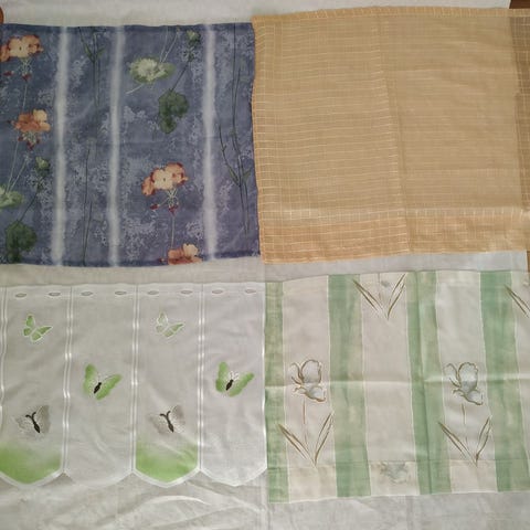 60 x220cm, 2 kpl .Valoa läpäisevä kangas .Hinta 8 e