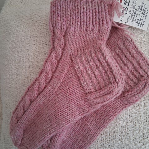 Kauniit palmikkosukat. Ohuesta villasekoitelangasta. Pohja 24,5 cm.