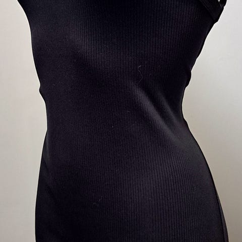 Mitat näkyy kuvissa ja mekko joustaa vielä noista mitoista melko hyvin.