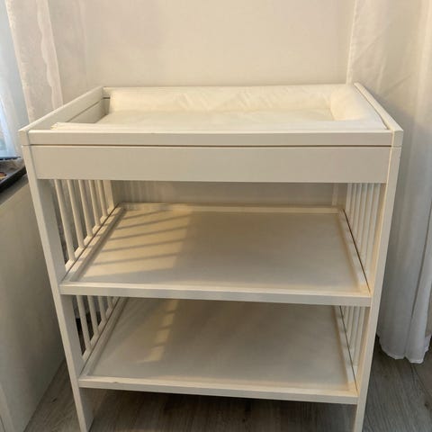 Hoitopöytä mutta irrotettavissa oleva hoitoalusta, jotta saa pelkän hyllyn.
