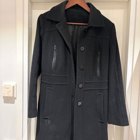Myyn tumman harmaan villakangastakin. Malli on kapea. Kuva antaa hieman nuhruisen vaikutelman mutta takki on tasavärinen ja moitteeton. Lämmin thinsulate vanu.