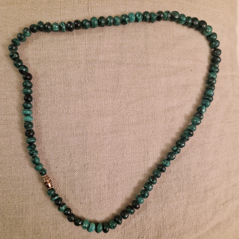 Upeat malakiittikorut. Sormus, korvikset, kaulaketju ja rannerengas.