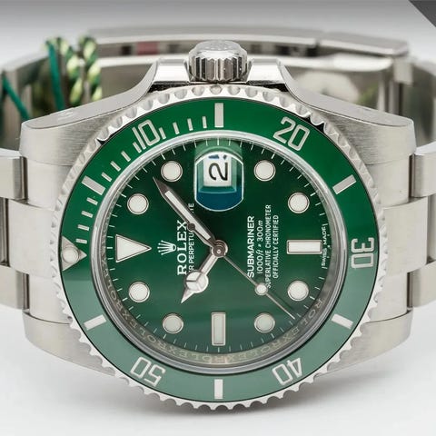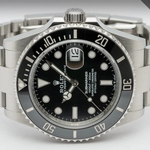 Huippukuntoinen ja erittäin haluttu sukeltajankello, jossa on mukavasti preensensiä sen sisarmallejaan paksumman kuoren ansiosta. Aiemmasta 16660 (“tripple six”) -mallista poiketen tässä peltikehäisessä diverissa on mukana tuulahdus uudempaa teknologia, kuten taulun luminova-lumeaine, teräksiset rannekkeen päätypalat (nk. SEL, eli “solid end link” -ranneke) sekä uudempi cal. 3135-koneisto. Musta, selkeälukuinen taulu tälle mallisarjalle tyypillisesti ilman päivyrin suurennuslasia. Teräksisen kuoren sisällä tikittää tarkasti Rolexin inhouse-automaattikaliiperi. Kellon paperit on päivätty 10/2002 ja se on huollettu 10/2024 – huoltotakuu on voimassa 10/2025 asti. Mukaan kaikki alkuperäiset paperit, korttitasku, hang tag, molemmat laatikot, bezelin muovisuoja, ranneketyökalu sekä näyttävä ankkuriavaimenperä. Tästä upea keräilytason setin omaava diver, jolla uskaltaa sukeltaa hieman syvemmissäkin vesissä!