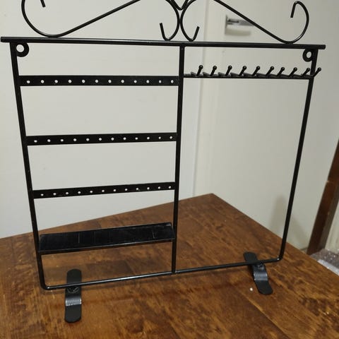 Koruteline mustaa metallia. Paljon tilaa korvakoruille.