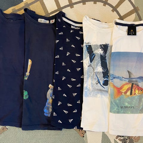 4 × trikoopaita 116-122 cm, yht. 6€ (Espoo)