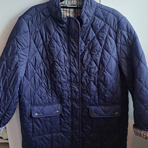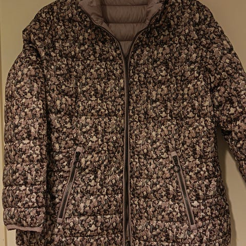 Uusi naisten kevyt takki korkealla kauluksella ja irrotettavalla hupulla, jossa on kiristettävät nyörit. Vetoketju-ja nepparikiinnitys, tilavat taskut ja raidallinen vuorikangas. Koko 46, mitat olka-helma n. 83cm, kainalo-kainalo 65cm. Väri kaunis harmahtavan vihreä.