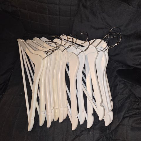 Myydään pois Stockmannilta ostetut valkoiset henkarit.