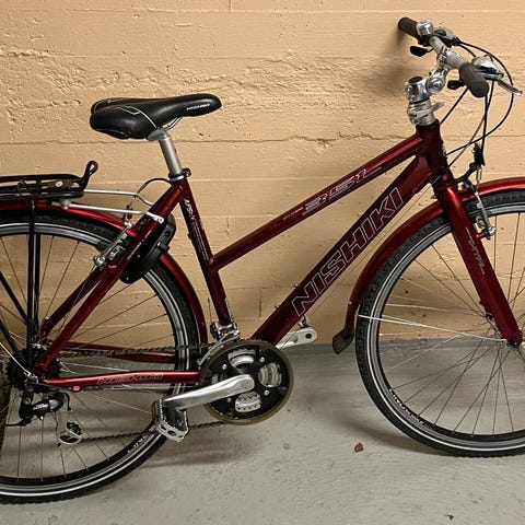 Uudenveroinen pyörä runkolukolla. Valaisimet kaupanpäälle.